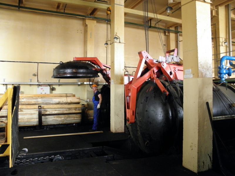 Третий этап – это окончание строительства цеха пропитки древесины. В этом цехе смонтировали автоклав проходного типа с рабочим давлением в 16 атмосфер. Цех разбили на несколько площадок: площадки складирования непропитанной и готовой продукции, машинный зал с пультом управления, механические мастерские, тепловой узел и вентиляционная система с дожигом выбросов. Автоматизация управления процессами позволила с помощью компьютера управлять системой вентиляции и технологическими процессами пропитки древесины.