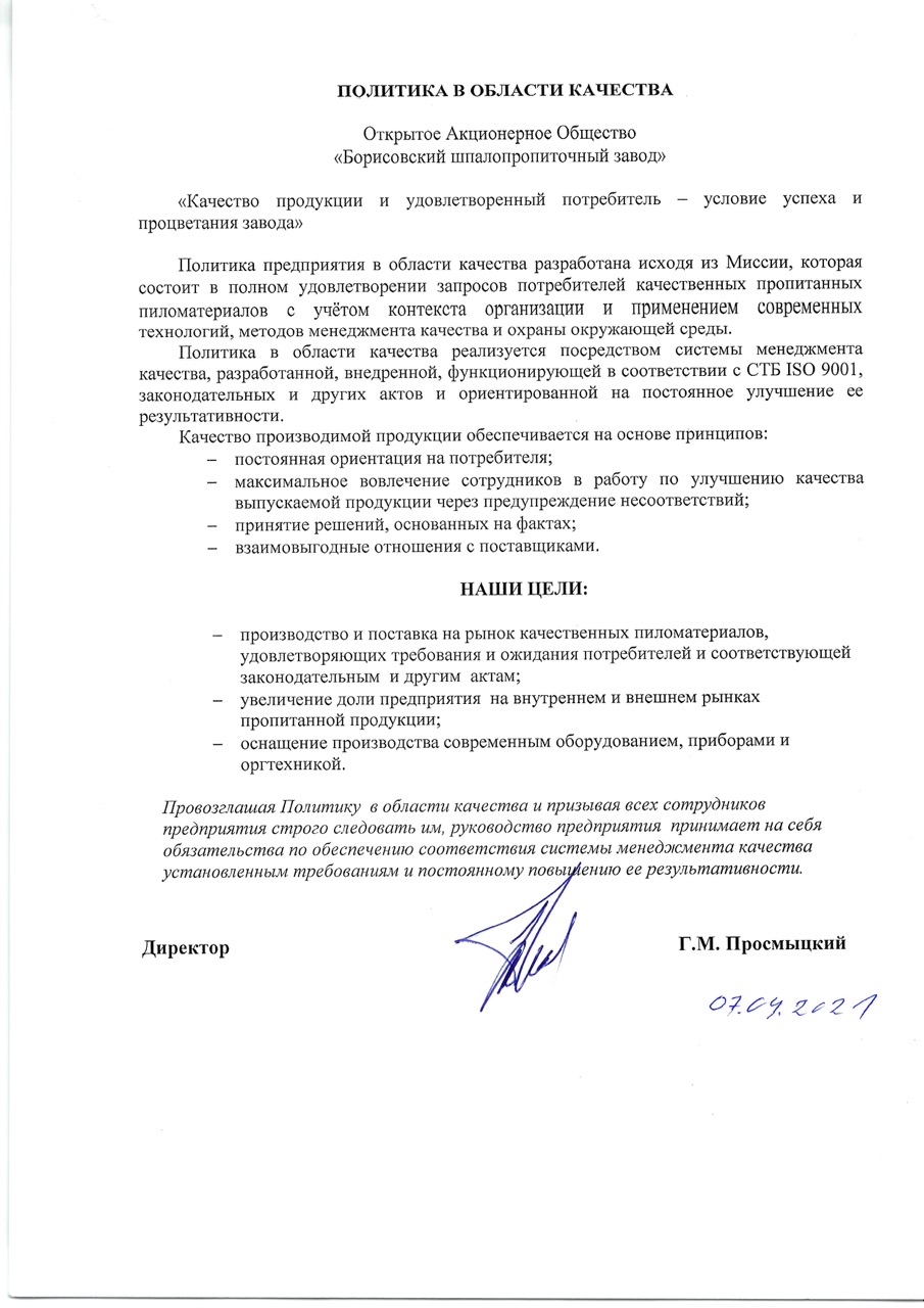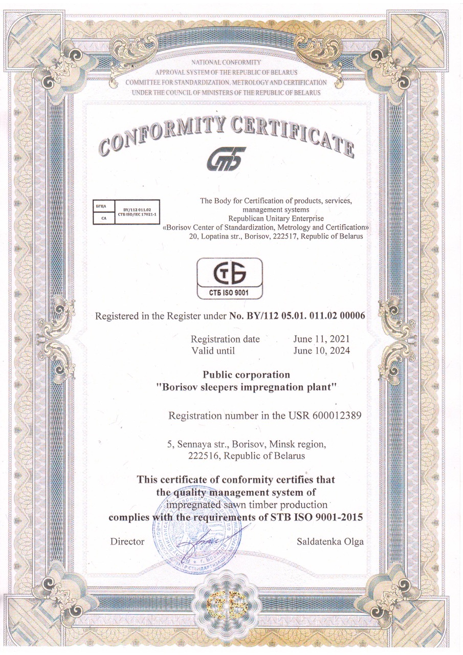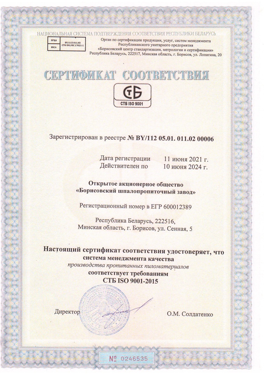 На заводе сертифицирована и функционирует система менеджмента качества СТБ ISO 9001-2015, (Сертификат соответствия системы менеджмента качества предприятия, зарегистрирован в Реестре Национальной системы подтверждения соответствия Республики Беларусь под № BY/112 05.01. 011 00006 действителен до 10 06 2024 г.).